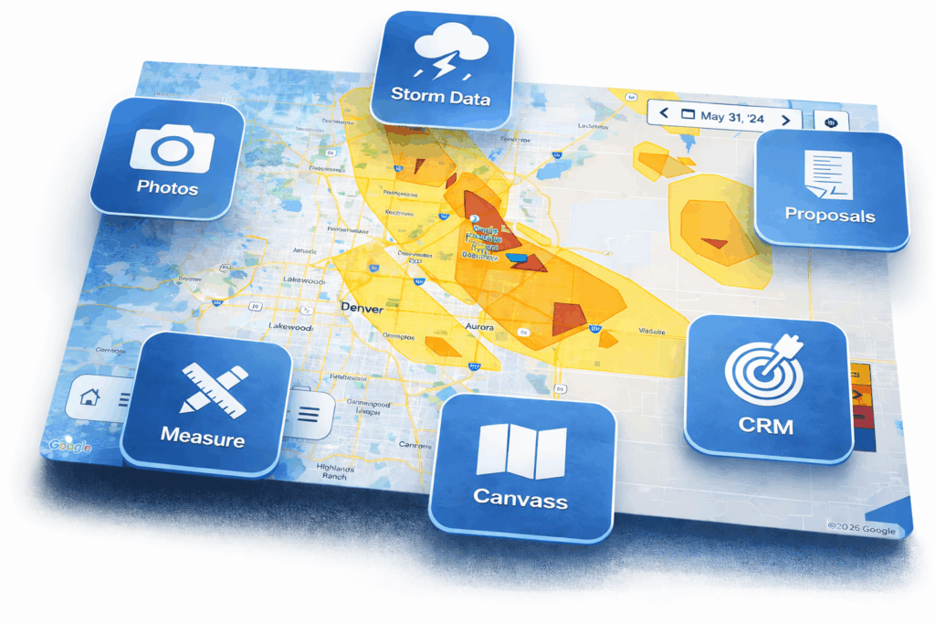 STORM DATATransform scheduling by zeroing in on customers who need you most, prioritizing the highest-impact blocks, and getting reps on the road with optimized routes. That means more qualified conversations, fewer miles, and a faster path from door knock to scheduled inspection.